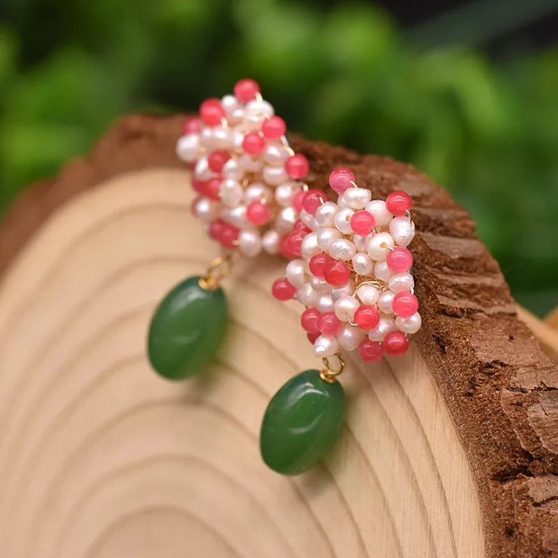 Freshwater pearls with natural Jade stone