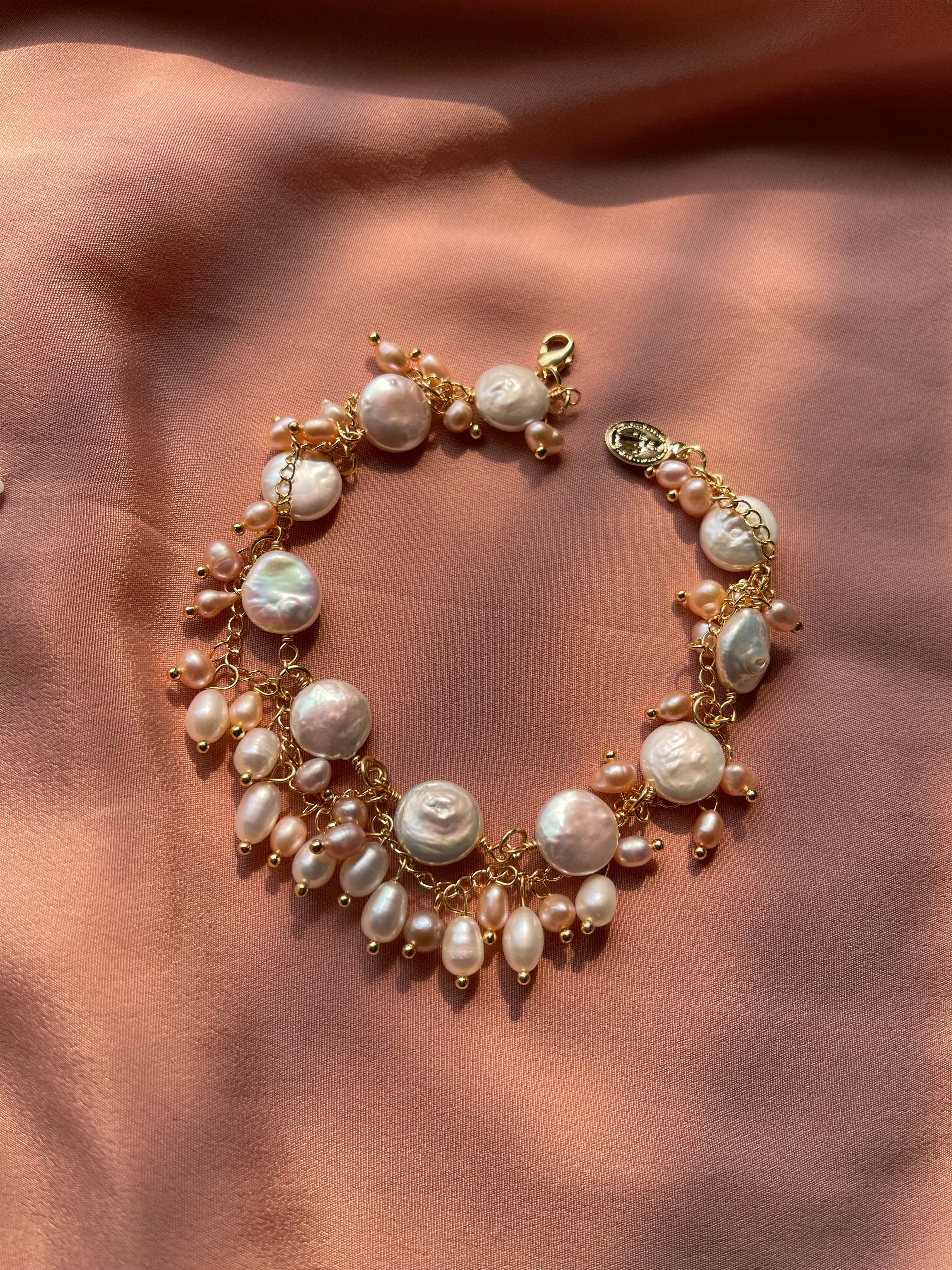 Charlotte Pearl Bracelet: Adorn your wrist with the timeless elegance of the Charlotte Pearl Bracelet, a masterpiece crafted from genuine freshwater pearls. Each pearl carries the allure of the water's depths, presenting a natural iridescence that is both delicate and captivating. With the Charlotte Pearl Bracelet, you embrace a symbol of purity and sophistication, adding a touch of classic beauty to your ensemble. Whether for special occasions or everyday elegance, this bracelet embodies the grace and refinement that only real freshwater pearls can bring