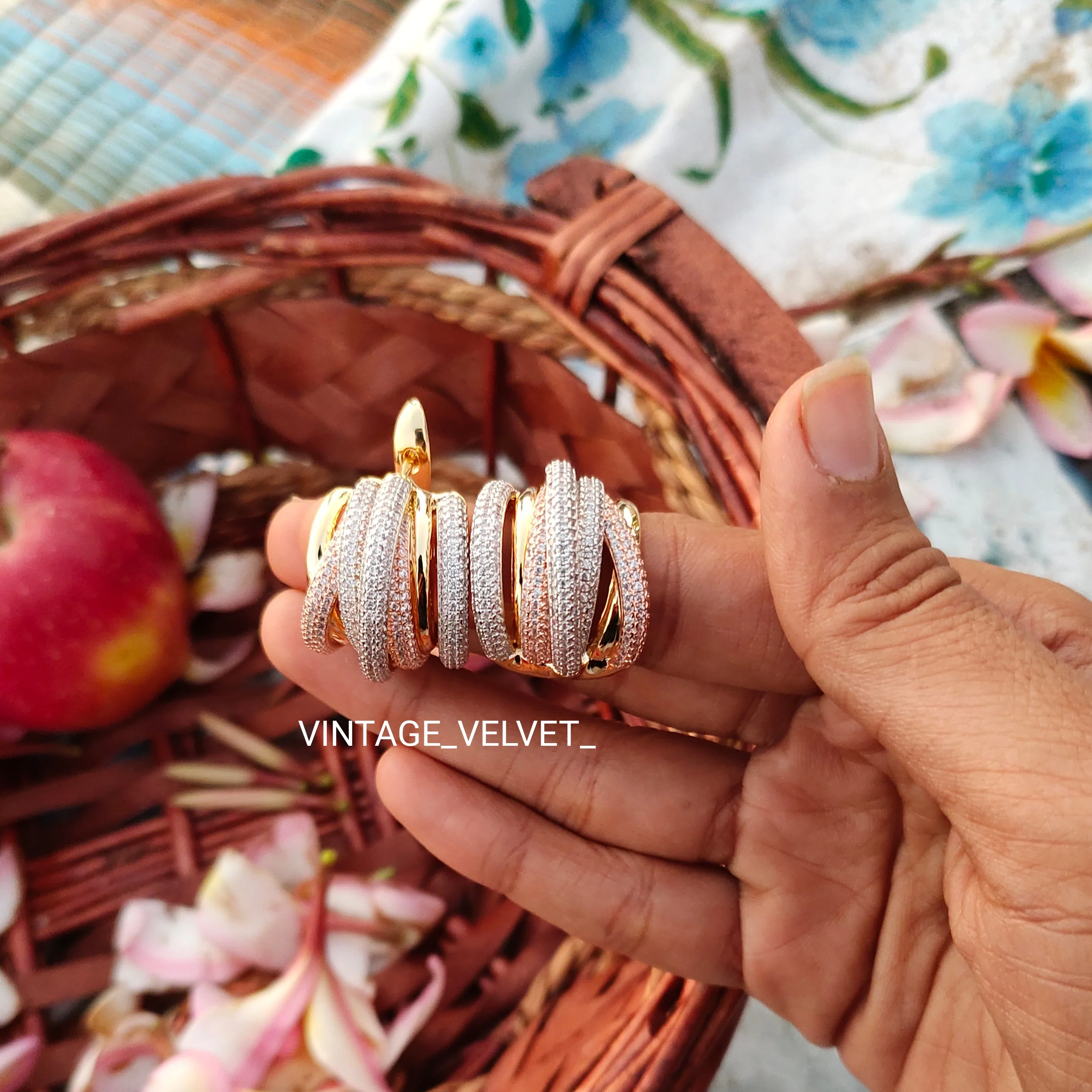 Our AAA ZIRCONIA TWISTED BRAIDED HOOPS are the definition of beauty. They can handle all, from weddings to parties to formal events, they can stand out everywhere. Adorn them with a saree, and they will truly elevate the entire look.